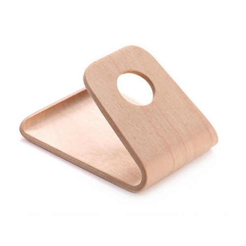 Deze telefoonhouder van berkenhout heeft een prachtig ontwerp. De simplistische vorm en het natuurlijke materiaal geven de standaard een chique uitstraling. De telefoon kan horizontaal of verticaal geplaatst worden.